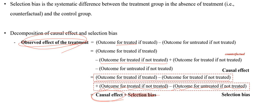 여기서 selection bias를 제거하면 Observed effect of the treatment와 causal effect와 같아짐