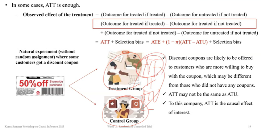 무작위 실험을 한다면 ATT와 ATE가 같아질 확률이 높아짐