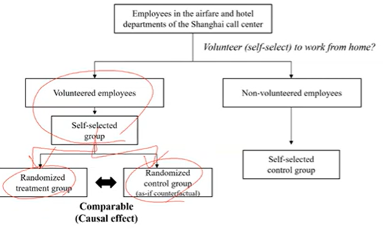 Randomized treatment 그룹과 Randomized control 그룹의 차이가 causal effect