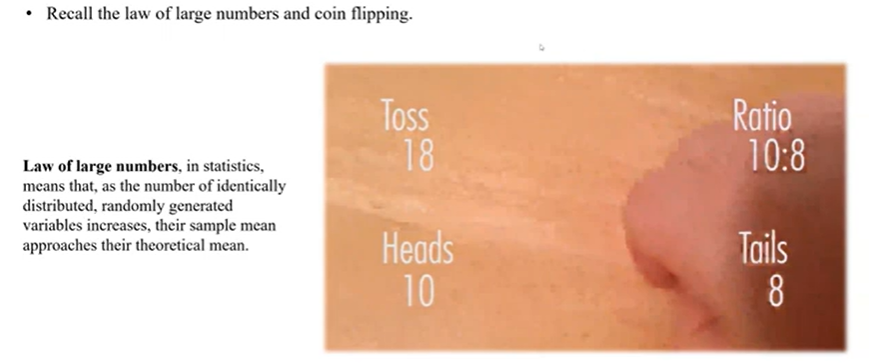 하지만, 동전 던지기를 많이 반복하면 결국 반반의 확률이 됨