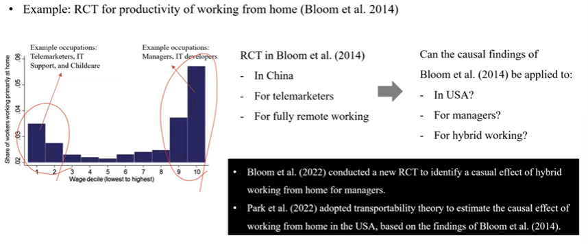 실험을 통해서 추정한 효과가 재택근문에 자원하지 않을 때도 이 효과가 그대로 적응될것인지?