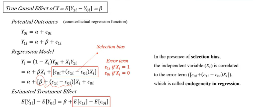 selection bias가 있으면 -> Endogeneity 가 나타남