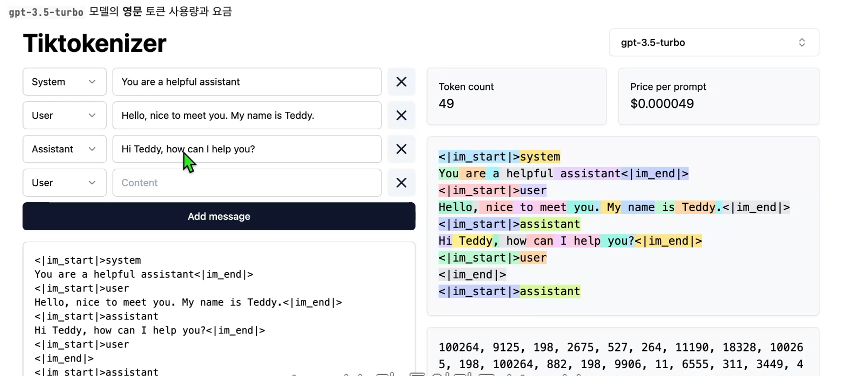 시스템 프롬프트가 기본으로 몇 토큰을 잡고 있음