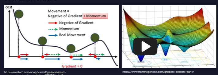 최종적으로 loss function이 작은 점에 가기 위해 local minimum을 지나갈 수 있는 방법이 있음